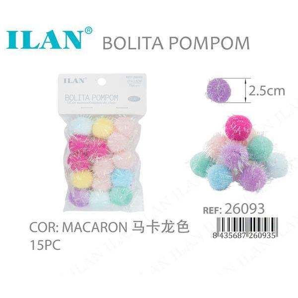 Ilan Bolita Pompon 2.5cm Colore Macaron 15 Pezzi Materiali per Artigianato