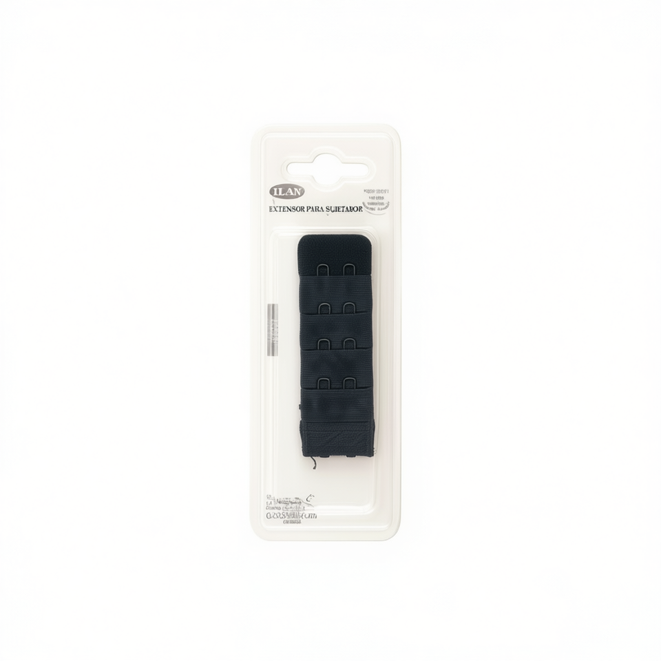 Estensore per reggiseno da 2,8 cm nero con chiusura a gancio e occhiello per allungare le spalline del reggiseno