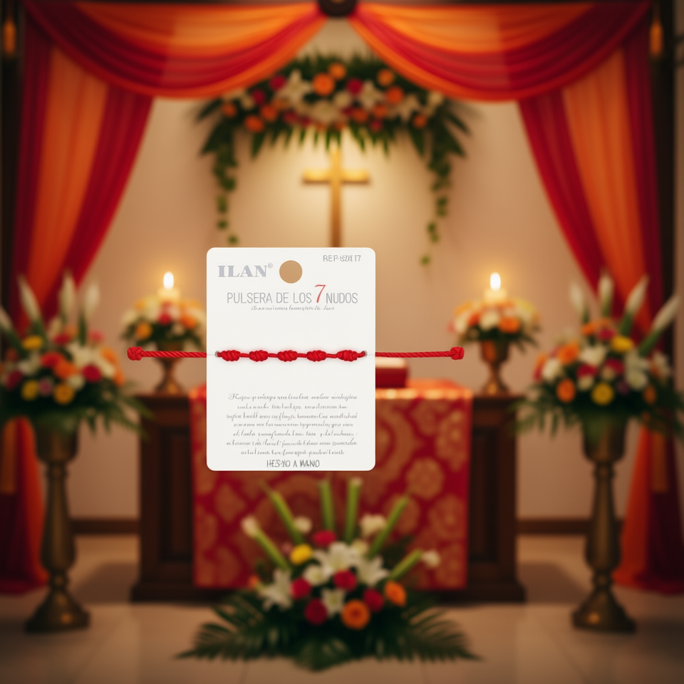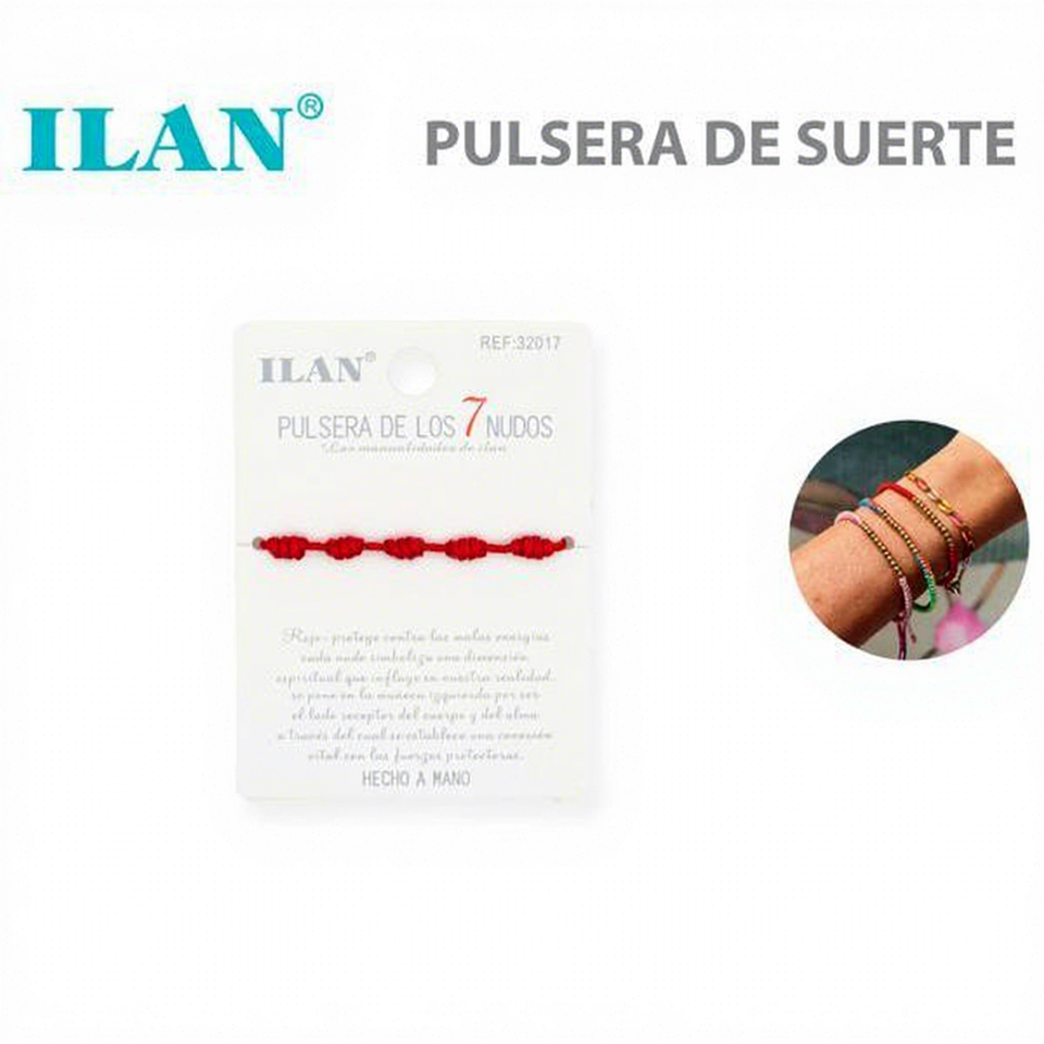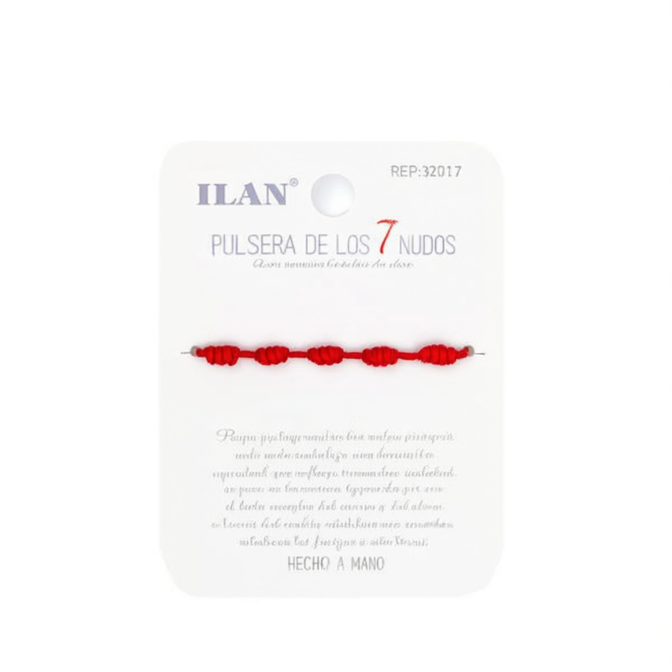 Braccialetto Unisex per Adulti Ilan con 7 Nodi, Cordino Rosso Spesso, Portafortuna Fatto a Mano