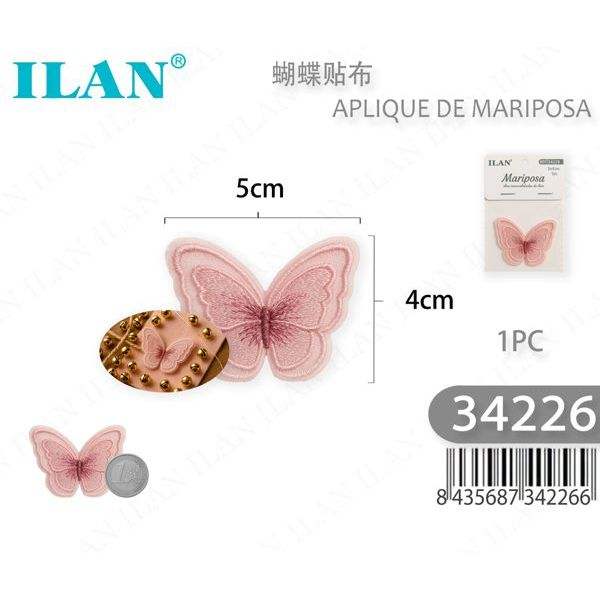 Applicazione a farfalla Ilan 5x4cm rosa, toppa ricamata per decorazione di abbigliamento