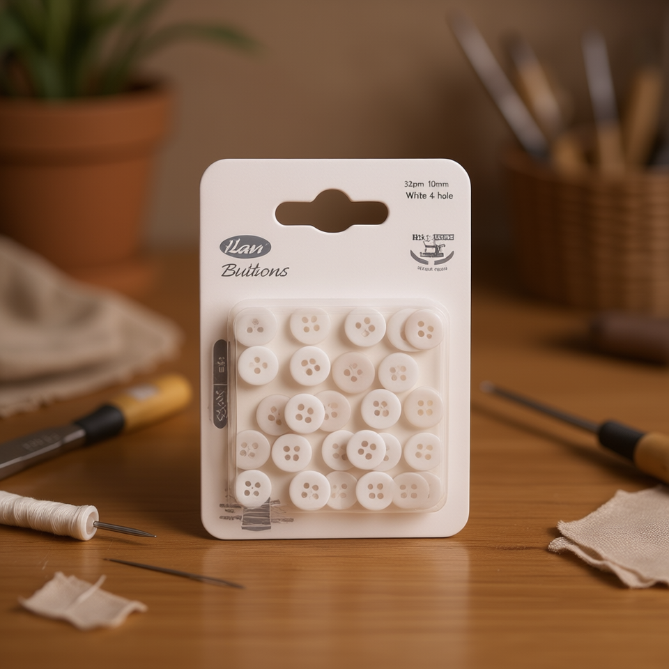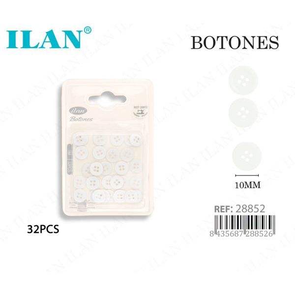 Bottoni Ilan 10mm 32 pezzi Bianchi 4 fori