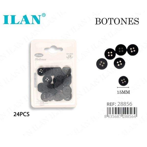 Bottoni Ilan 15mm Neri a 4 Fori Confezione da 24 per Cucito e Artigianato