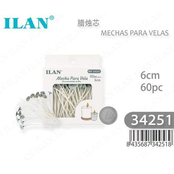 Stoppini per Candele Ilan 6cm 60pz per Candele Fai da Te
