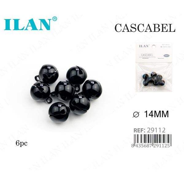 Ilan Cascabel Bell 14Mm Nero Laccato 6Pc Perline per Abbigliamento