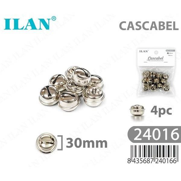 Campanelle Ilan Cascabel 30mm 4 pezzi Placcate Argento per Abbigliamento