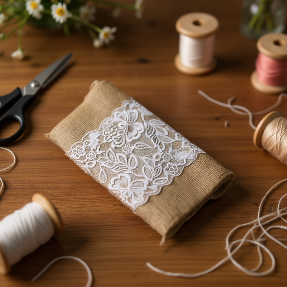 Nastro di lino Ilan 30cm x 1,8M con design floreale in pizzo per artigianato e decorazioni