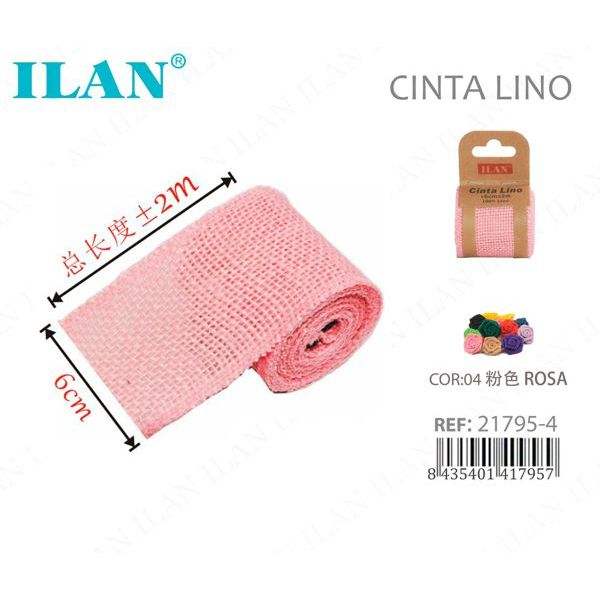 Nastro di lino Ilan Cinta 6cm X 2m colore rosa per artigianato e decorazioni