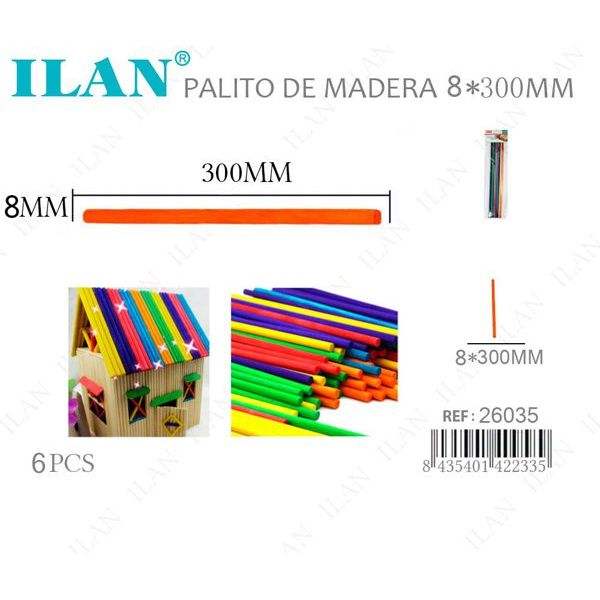 Bastoncini di legno colorati Ilan 8x300mm per giocattoli artigianali 6 pezzi