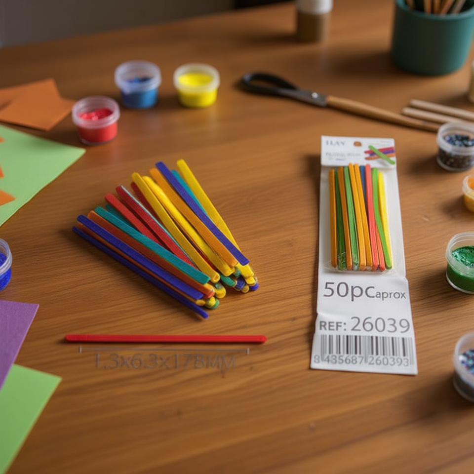 Bastoncini di Legno Colorati Ilan 1.3x6.3x178mm 50 Pezzi Materiali per Artigianato