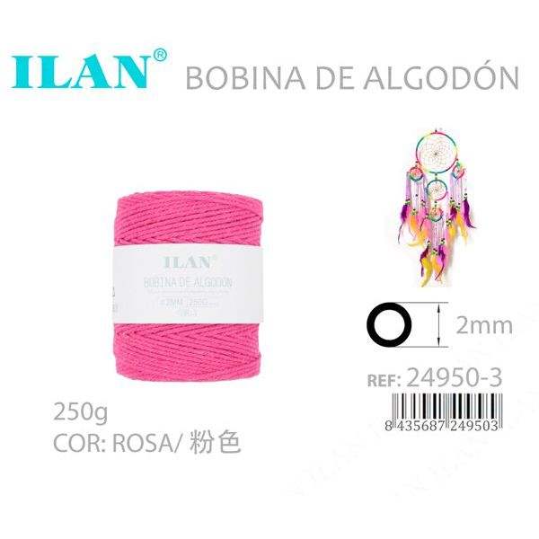 Bobina di Cordoncino in Cotone Ilan 2mm Fucsia 250g per Lavori Artigianali