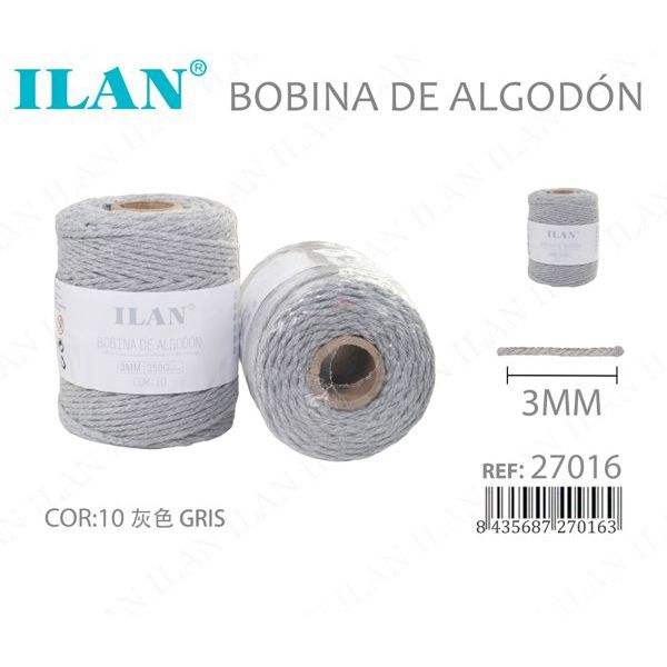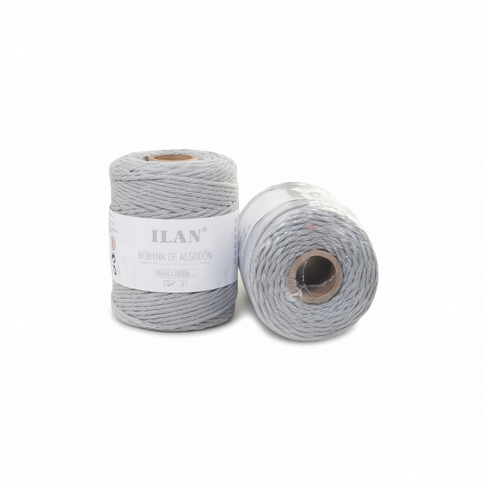 Bobina di Cordoncino in Cotone Ilan 3mm Grigio, Filato 100% Cotone per Artigianato e Cucito