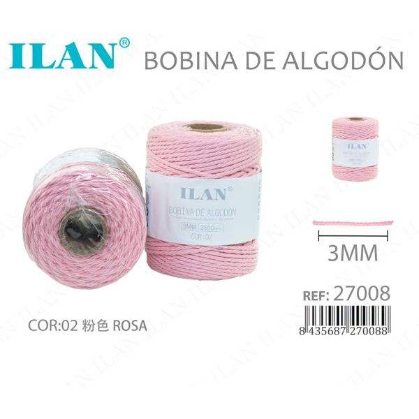 Bobina di Corda in Cotone Ilan 3mm Rosa, Filo da Cucito