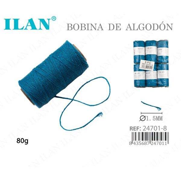Bobina di Filo di Cotone Ilan 80g Blu 1.5mm per Cucito