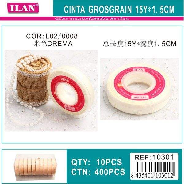 Nastro Grosgrain Ilan Cream 15Y, larghezza 1,5 cm, per artigianato e decorazioni