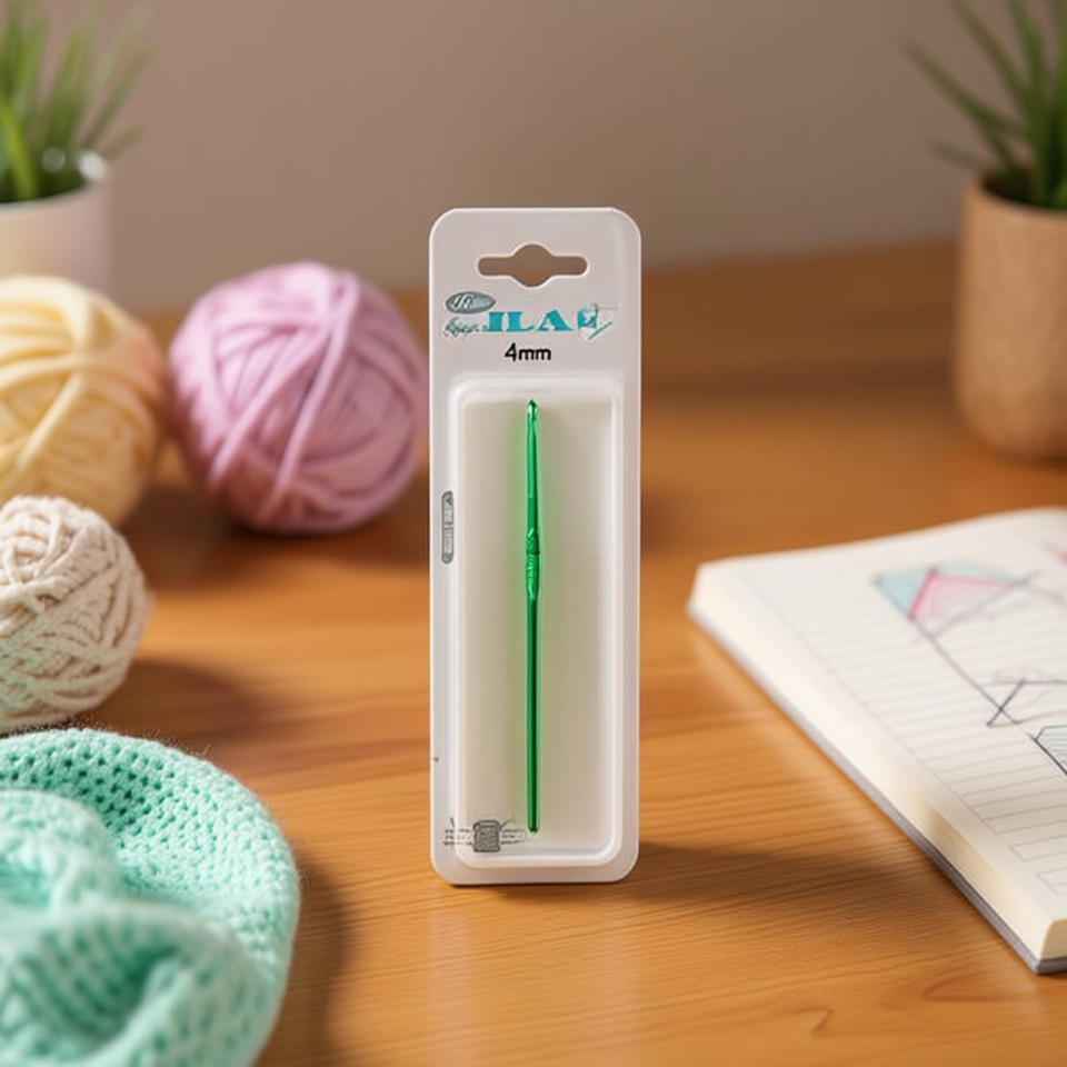 Uncinetto Ilan 4 mm in alluminio verde per lavori a maglia e artigianato