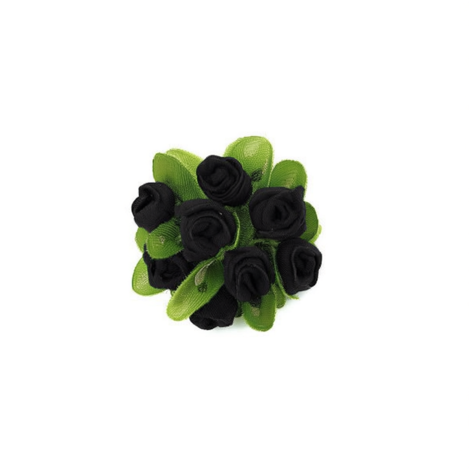 Fiore decorativo in tessuto Ilan da 14 mm nero con foglie verdi per artigianato e decorazioni