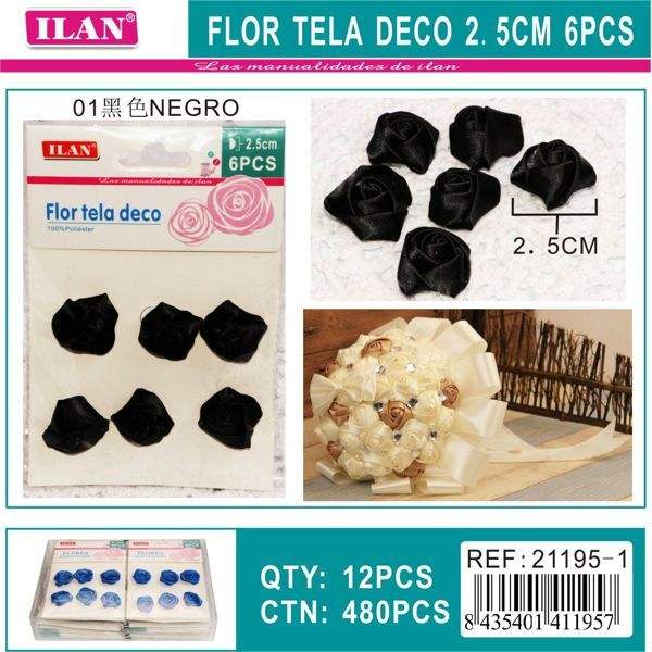 Ilan Decorative Fabric Flower 2.5Cm Black 6Pcs For Craft And Decoration