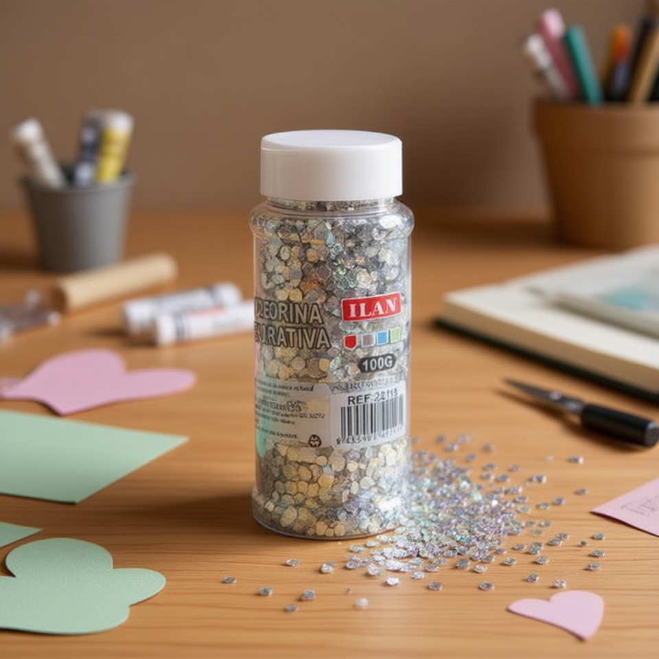 Glitter decorativo Ilan 100g a forma di cuore argentato per lavori artigianali