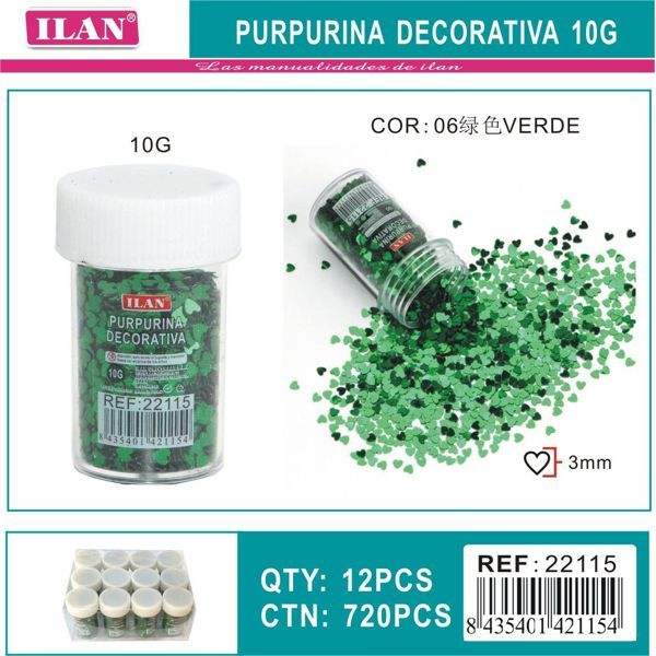 Glitter Decorativo Ilan 10G Colore Verde Paillettes da 3mm per Lavori Artigianali