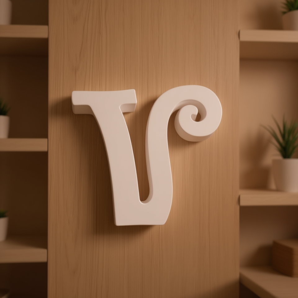 Insegna Decorativa da Parete in Legno a Forma di Lettera V, 14,5 cm, di Ilan