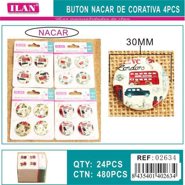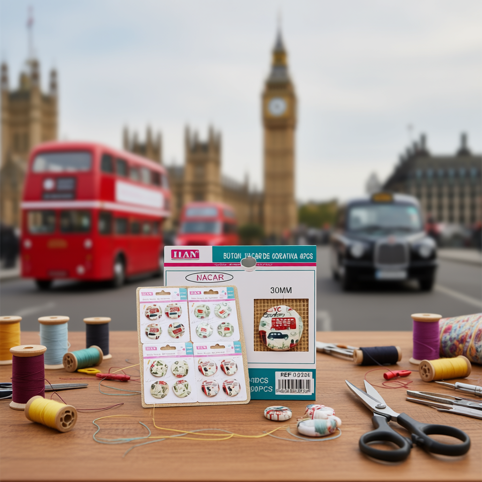 Bottoni Decorativi Ilan con Perle 30mm Tema Londra per Lavori Artigianali