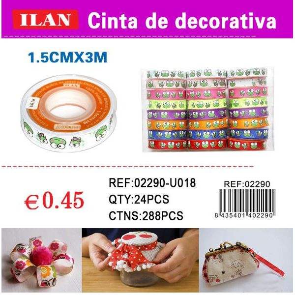 Nastro decorativo Ilan 1,5 cm x 3 m con motivo a rana per artigianato e confezioni regalo