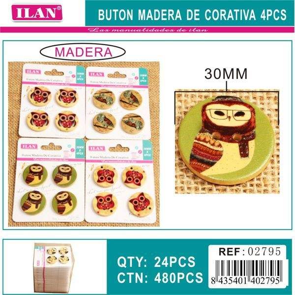 Ilan Bottone Decorativo in Legno 30mm Design Gufo Forniture per Artigianato