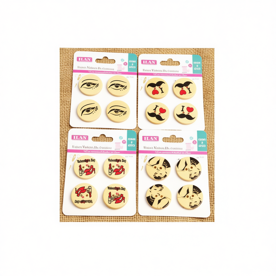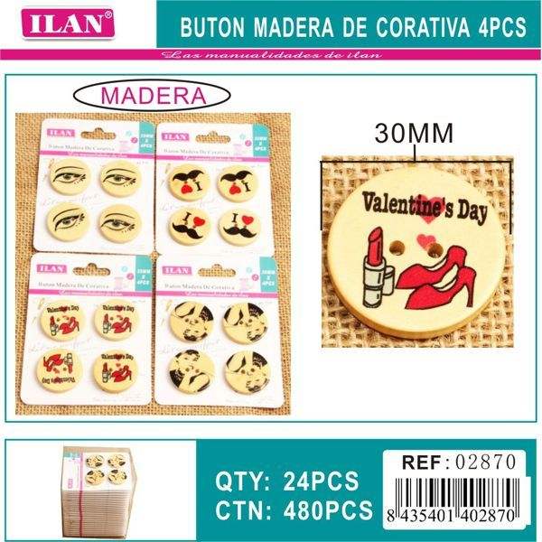 Ilan Bottone Decorativo in Legno 30mm Tema San Valentino Confezione da 4 Pezzi
