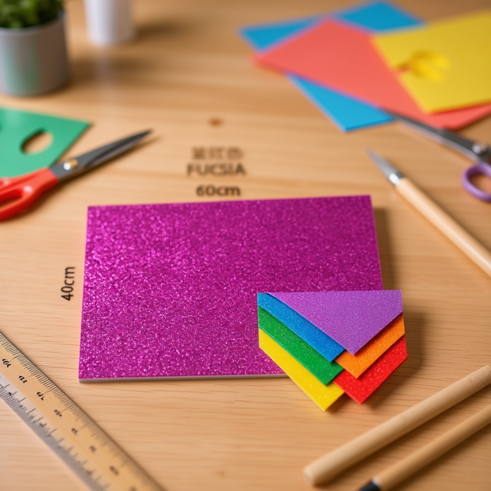 Foglio di Schiuma EVA Ilan 60x40cm Fucsia Glitterato, Materiale per Artigianato