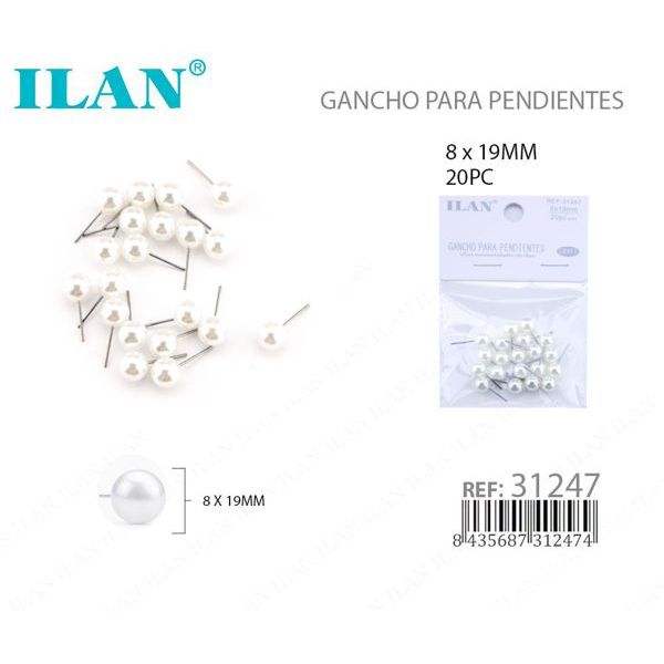 Ganci per orecchini Ilan con perle avorio 8x19mm, 20 pezzi per la creazione di gioielli