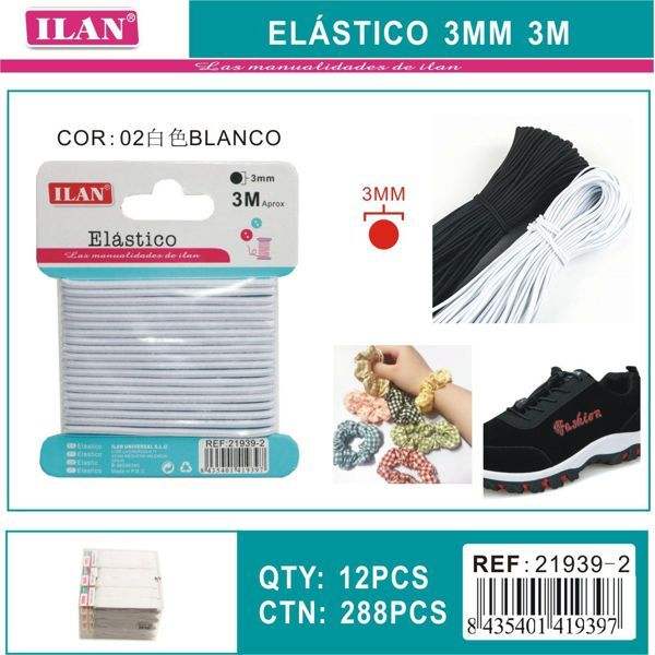 Fascia elastica Ilan 3 mm 3 m bianca per artigianato e scarpe