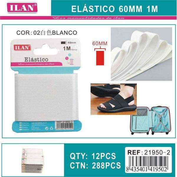 Nastro Elastico Ilan 60Mm 1M Bianco Per Artigianato E Cucito