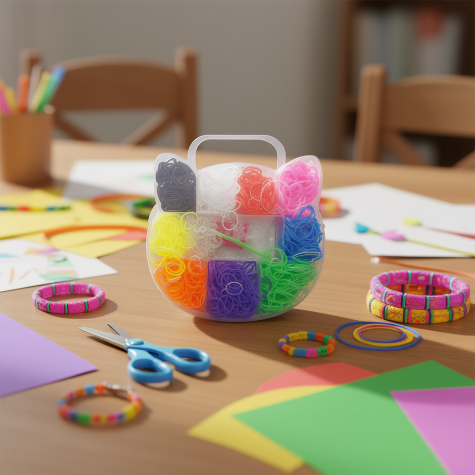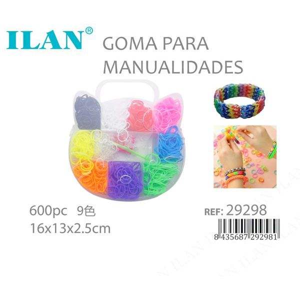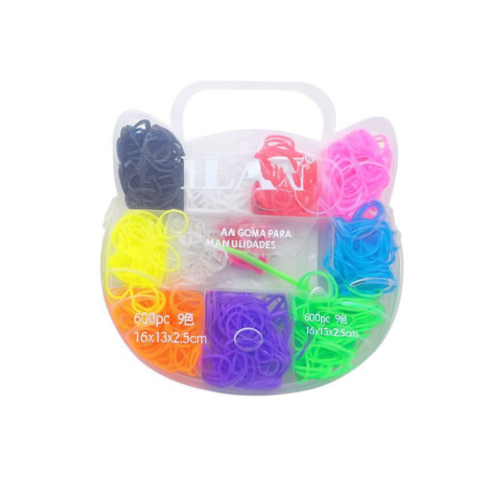 Elastici per artigianato Ilan, 600 pezzi, 9 colori, 16x13x2,5 cm, con custodia.