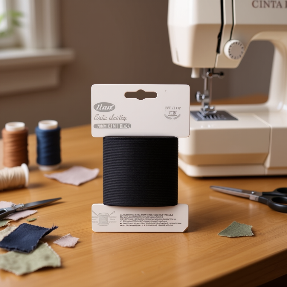 Cinghia elastica Ilan 70 mm x 1 m nera per cucito e artigianato