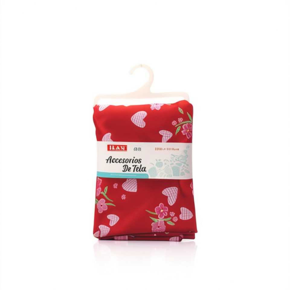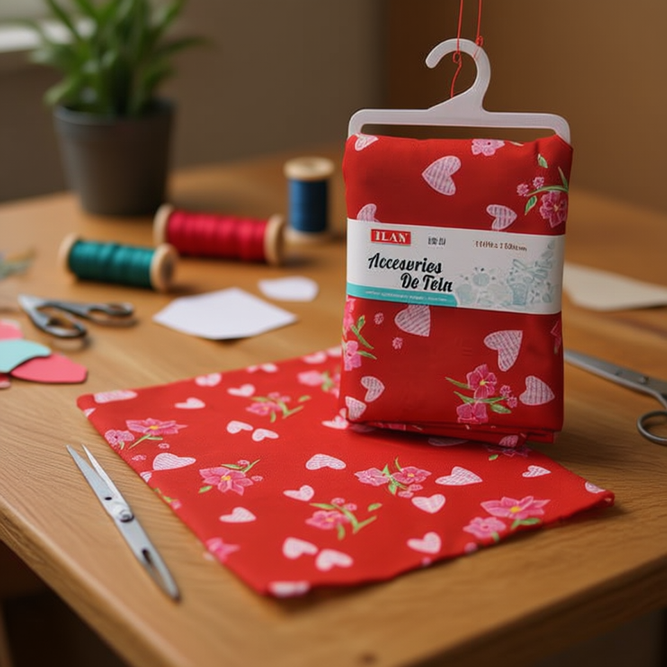 Accessorio in tessuto Ilan 100cmx150cm con stampa floreale a cuori rossi per lavori artigianali