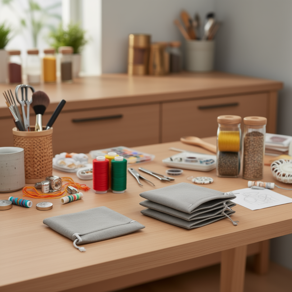 Borsa in tessuto Ilan 9x12 cm 3 pezzi Grigio Borsa portaoggetti multiuso