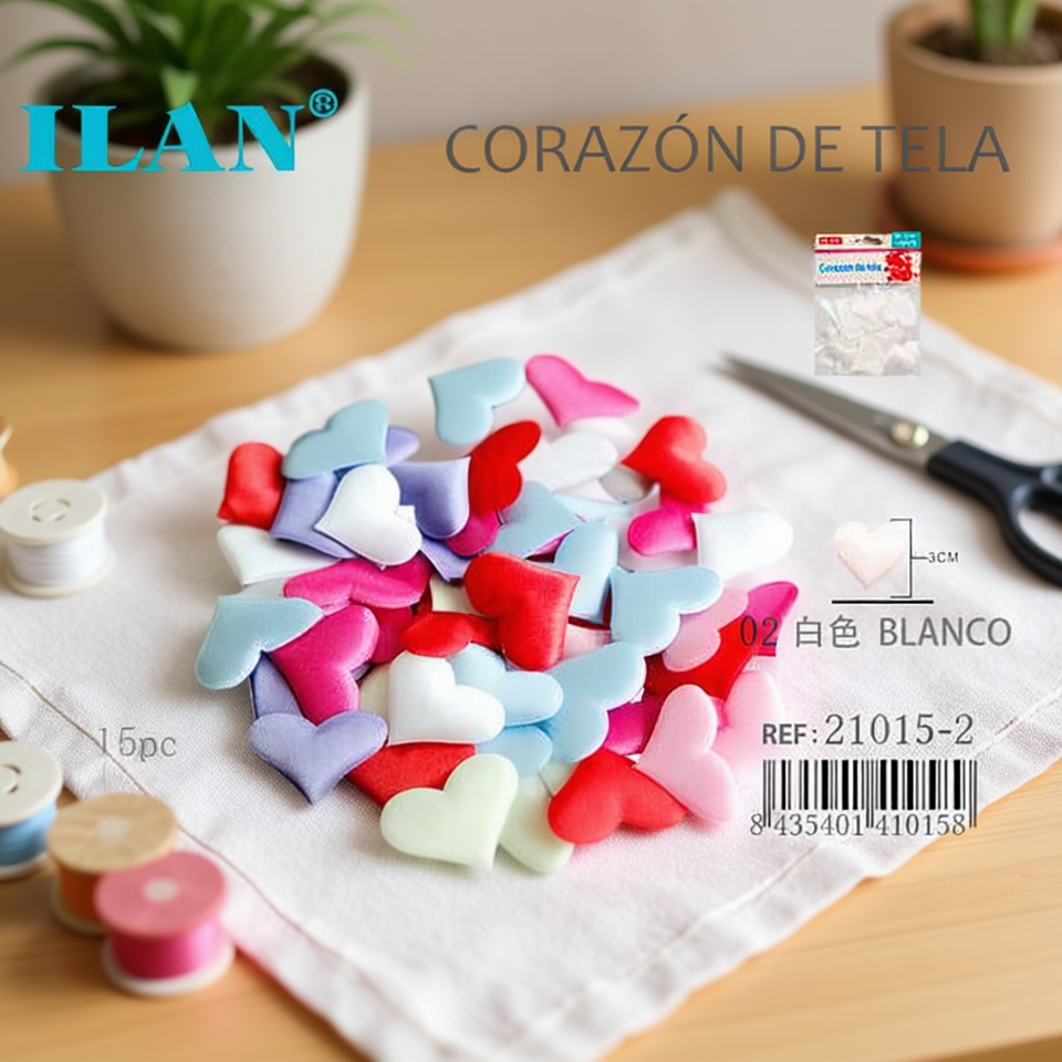 Cuori in Tessuto Ilan 3cm 15pz Bianchi Decorativi per Artigianato