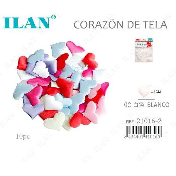 Cuori in Tessuto Ilan 5cm 10pz Bianchi Decorativi per Artigianato