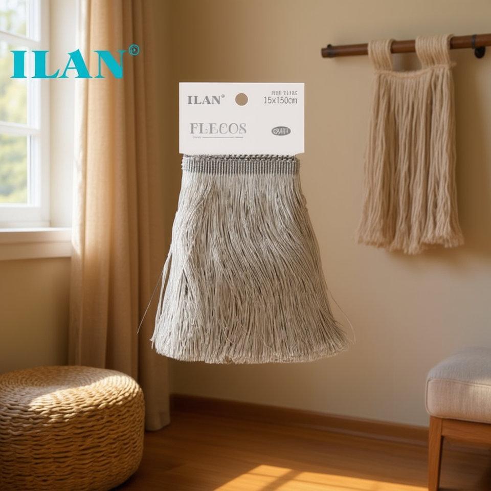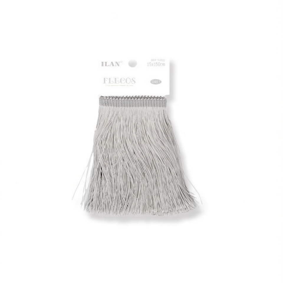 Passamaneria decorativa con frange Ilan Fleco 15x150cm grigia in poliestere per abbigliamento e decorazioni per la casa