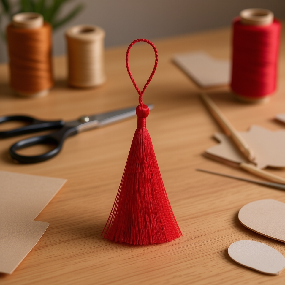 Ilan Flecosh Frange con Nappine Rosse da 8 cm, Confezione da 6 Pezzi (circa), Forniture Decorative per Artigianato
