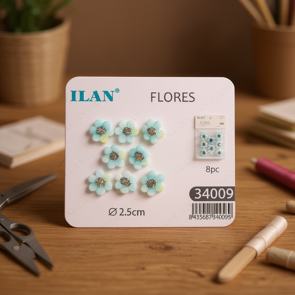 Ilan Flores Decorazioni Floreali Blu 2,5cm 8 Pezzi per Artigianato