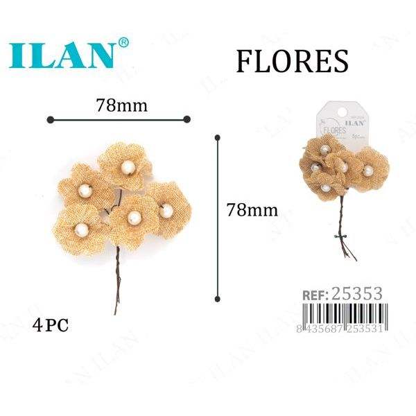 Ilan Flores Fiori Secchi da 78mm con Perle, Set da 4 Pezzi, Prodotto in Cina