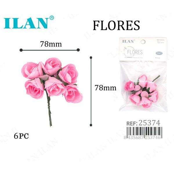 Ilan Flores Rose di Carta Rosa 78mm 6 Pezzi per Decorazione