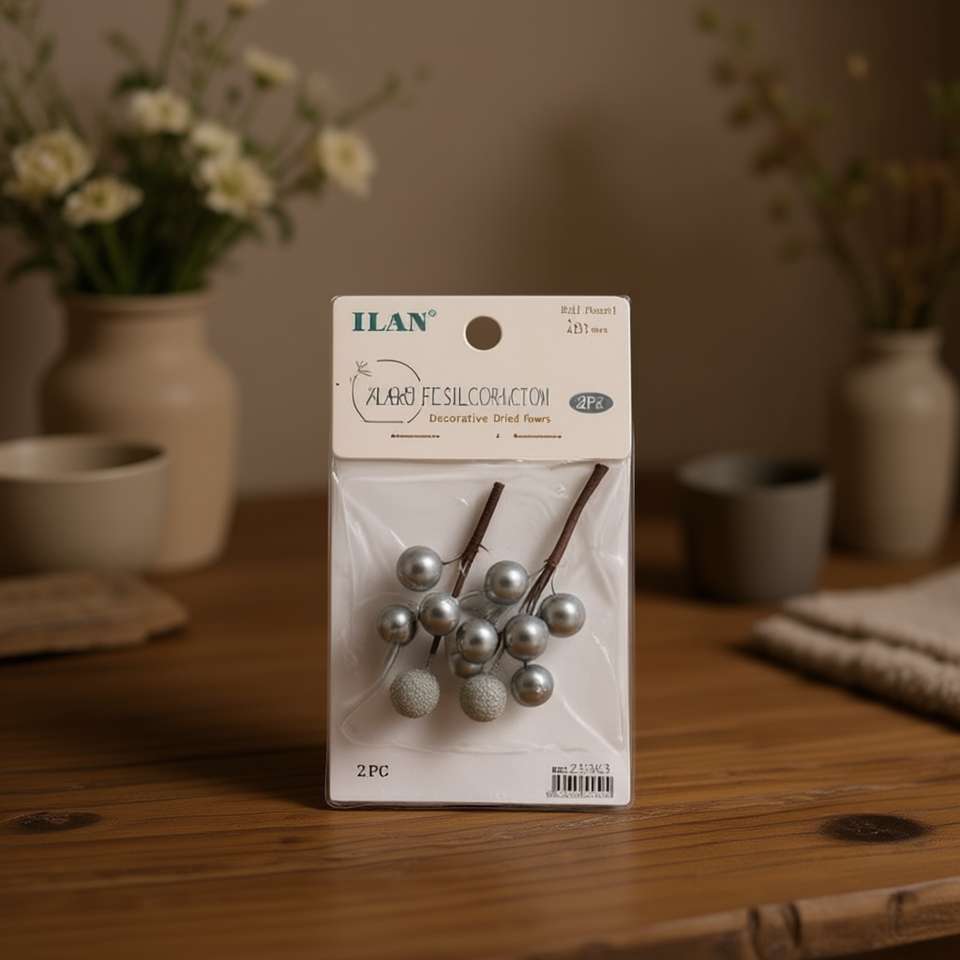 Ilan Flores Ghiande d'Argento 2 Pezzi Fiori Secchi Decorativi Cina