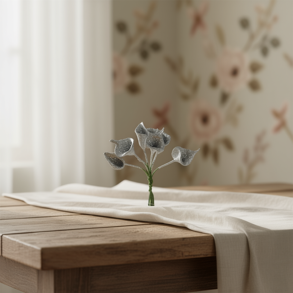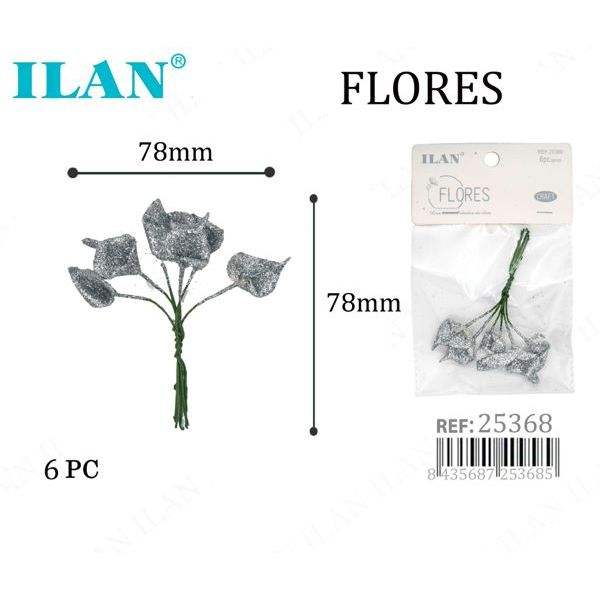 Ilan Flores Calla Lily Argentata con Glitter 78mm 6 Pezzi Fiori Secchi