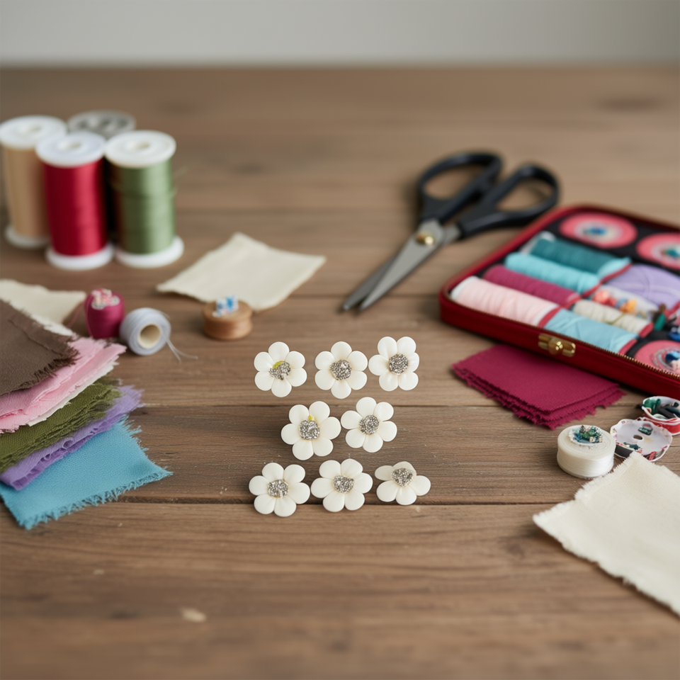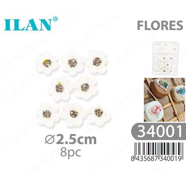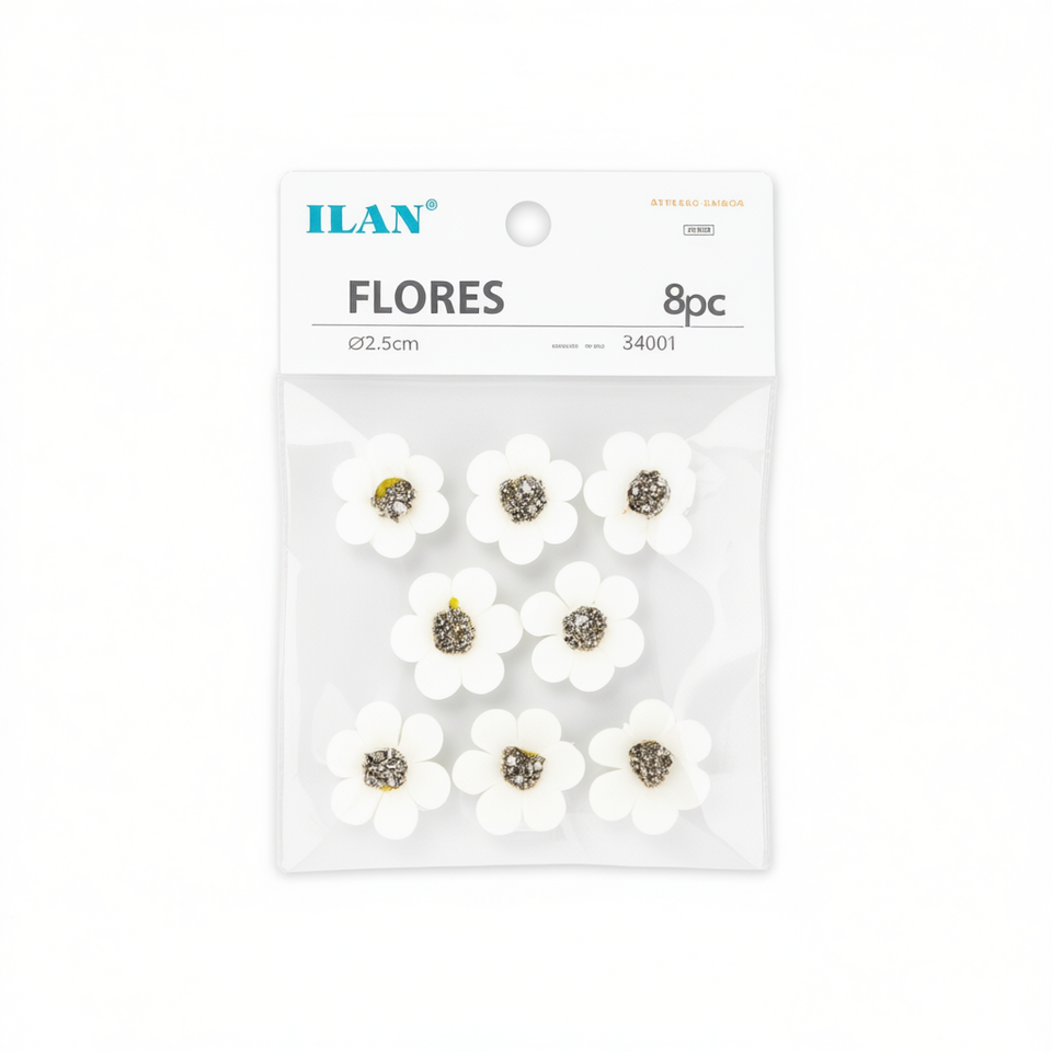 Applicazione Floreale Bianca Ilan Flores, Decorazione Ricamata in Plastica con Perline Adesive 2,5cm 8pz