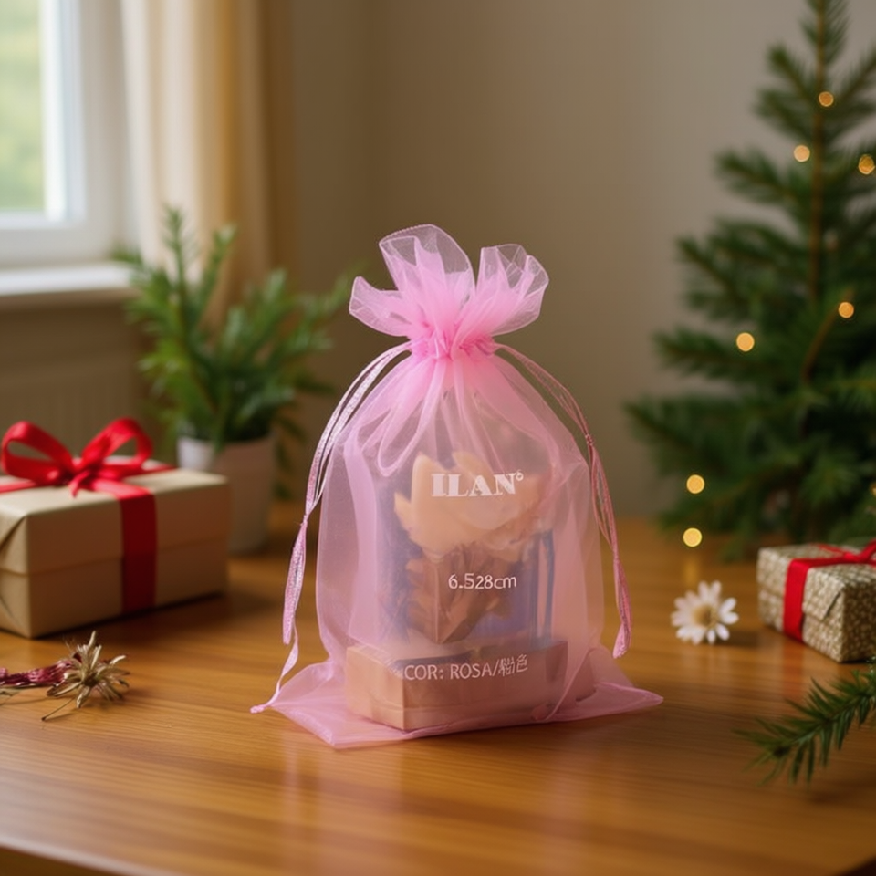 Sacchetto Regalo Ilan 6,5x28 Cm in Organza Rosa per Regali