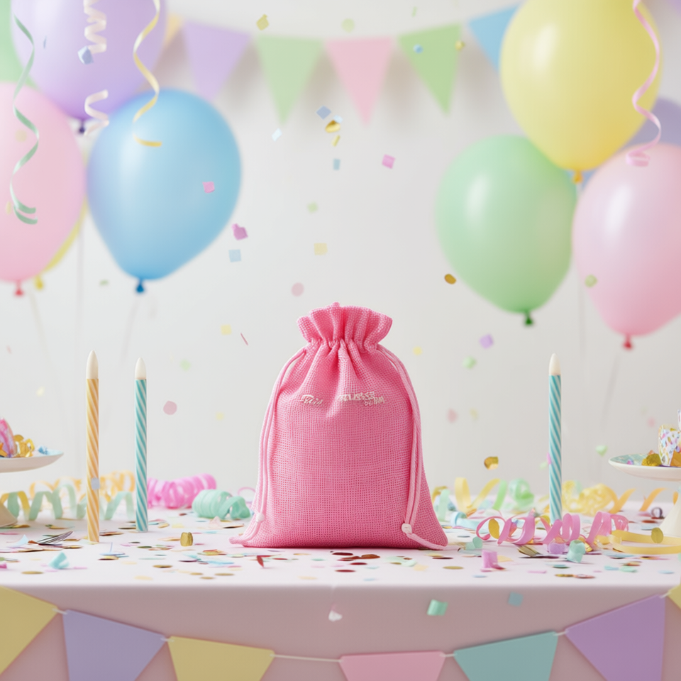 Sacchetto Regalo Ilan Rosa 15x20 Cm in Imitazione Juta per Bomboniere