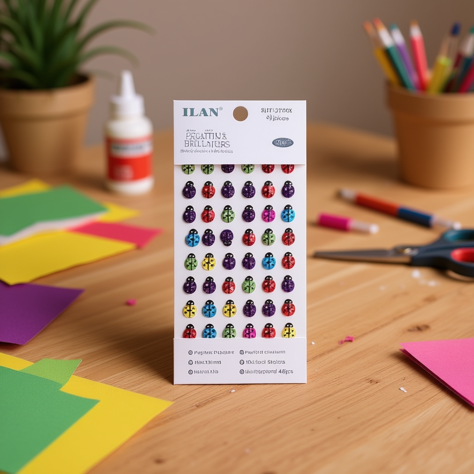 Adesivi Ilan Glitter Ladybug 10x13mm multicolori 48 pezzi per lavori artigianali