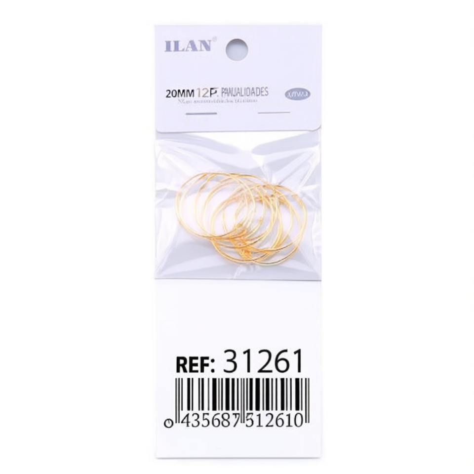 Orecchini a Cerchio in Oro Ilan 20mm, 12 Pezzi, Materiali per Artigianato